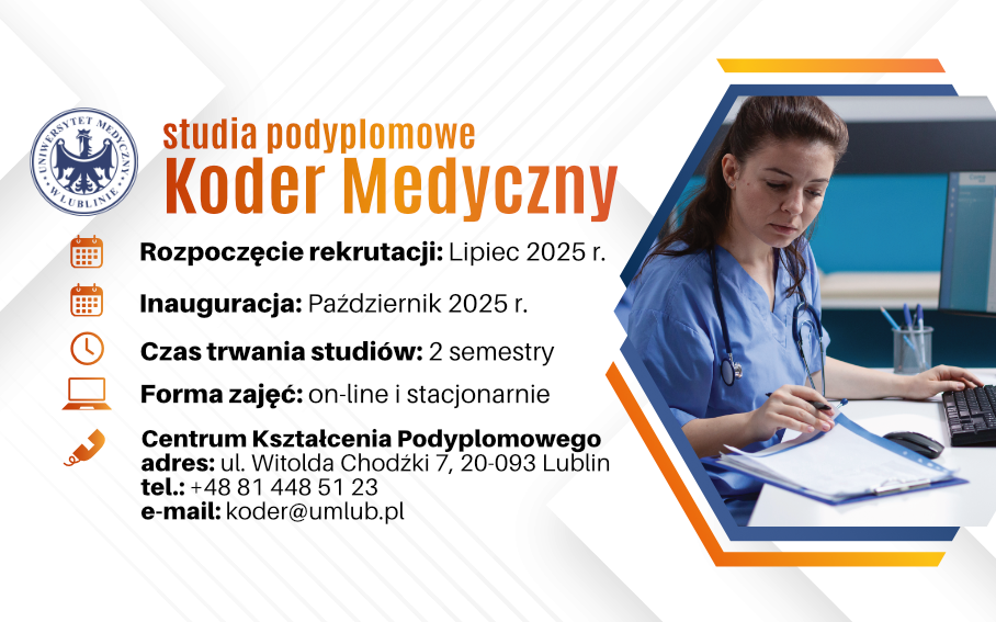Celem studiów podyplomowych „Koder medyczny” jest wykształcenie wykwalifikowanej kadry, która w prawidłowy i profesjonalny sposób będzie zajmowała się gromadzeniem informacji medycznej pozwalającej na zgodne z regulacjami prawnymi uzyskanie płatności za udzielane świadczenia opieki zdrowotnej. Studia oferują pozyskanie wiedzy między innymi z zakresu sprawozdawania, kodowania i rozliczania świadczeń opieki zdrowotnej, prowadzenia dokumentacji medycznej, prowadzenia kolejki i harmonogramu przyjęć, zarządzania podmiotem leczniczym, gospodarki lekami, nadzorowania właściwego wykonywania umów zawartych z NFZ.
